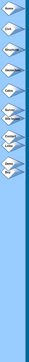 Home * Civil * Structural * Geotechnic * Site Survey & layout * Calcs * Contact & Links * Demo & Buy | ||