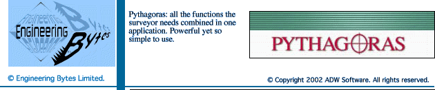 Pythagoras is Easy to Learn. Why? Because it works and thinks like a Land Surveyor. Powerful tools are right at your fingertips, all the time. The control panel acts like a dashboard in your car, displaying critical information. There is no need to memorize complicated line-commands. Everything is menu-driven. Pick and Choose. It's that simple. Pythagoras is a Complete Standalone solution for Land Surveyors and Civil Engineers. It contains every feature you will ever need. It is not piggy-backed on top of a complicated CAD application. Pythagoras includes a staggering amount of Specialized Drawing and Design tools. The control panel acts like a dashboard in your car, displaying critical information for any object. Move the cursor over a point, and instantly view its NEZ coordinates, Polar coordinates, point number, description or distance to other points. Move the cursor over a line, and instantly obtain its length, slope, bearing and more. The cursor even changes its shape, to indicate perpendicular points, tangent points, halfway points, and more. It's not just an ordinary cursor. It's an Intelligent Cursor! Pythagoras has all Cogo features you will ever need. Intersection, Resection, Open and Closed Traverses, Coordinate Transformations,you name it. More importantly, Pythagoras does Cogo in the background while-you-draw. Pythagoras accurately keeps track of the complete geometry of the drawing. All information you will ever need is derived from the geometry - coordinates, bearings, distances, slopes, angles. The geometry is a logical result of the drawing. It's always accurate, and it avoids mistakes. Pythagoras works with Real-world dimensions. It knows the real-world distance between points, the real-world radius of a curve, the real-world coordinates of points. The benefits are numerous. Do you have a drawing that was made in US feet, but now need to annotate in Meters? Simply change the Preference settings, and there you go. Two mouse clicks is all it takes. Pythagoras does not require you to start doing a complicated rescaling of your drawing to perform such a simple task. Pythagoras supports industry standard file formats. It reads and writes Pythagoras, DWG (including the latest AutoCAD 2002 format), DXF and ASCII file formats. Pythagoras runs on either PC or Macintosh. Both versions work exactly the same way, and both use the exact same file system. In a networked environment, computers using Microsoft Windows can work on the exact same drawing file as Macintosh computers connected to the same network. Or how about this scenario: While in the field, you use a Macintosh Powerbook. But when at the Office, you use a Microsoft Windows environment. No problem at all. Pythagoras uses the exact same file. It's the ultimate in flexibility!
